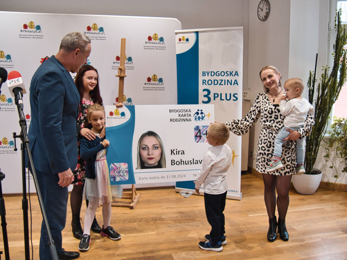 Jubileuszowa Karta Dużej Rodziny 3+ została wręczona w piątek (9 września) w Bydgoskim Centrum Organizacji Pozarządowych i Wolontariatu, Gdańska 5. Otrzymała ją, od prezydenta Bydgoszczy, Rafała Bruskiego, Kira Bohuslava z Ukrainy.