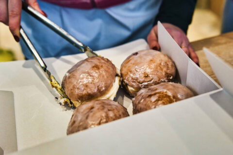 Przechodząc przez Stary Rynek, zauważamy z daleka bardzo długą kolejkę do paczkarni „#Mocno Nadziane”. Tam w ofercie są tradycyjne – z powidłami śliwkowymi i marmoladą różaną. Ale są też bardziej wymyślne, które z roku na rok zyskują coraz większą rzeszę zwolenników np. z nadzieniem pistacjowym i polewą z białej czekolady lub z nutellą. – Czekam już kilka minut. Ale powiem szczerze, że warto. Raz do roku pozwalam sobie zjeść takiego lepszego pączka, no nie jednego nawet – śmieje się jeden ze stojących w kolejce mieszkańców.