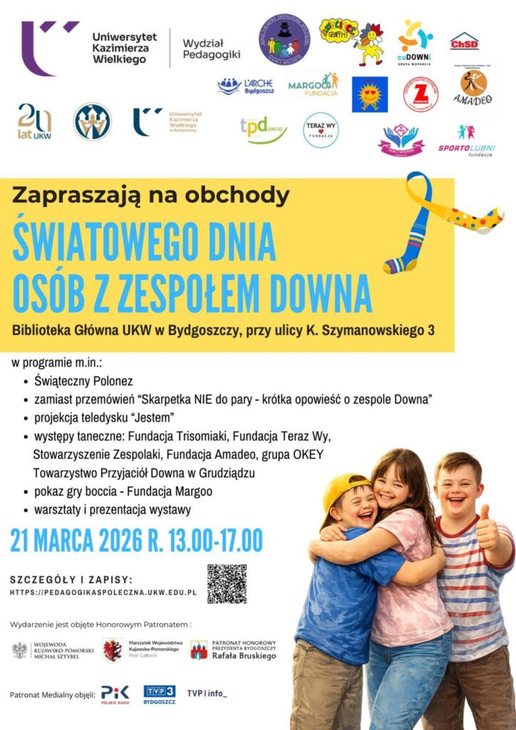 Oprócz tego w dniu 21 marca od 13.00 w Bibliotece UKW odbędzie się wspólna impreza organizacji działających na rzecz osób z zespołem Downa, której koordynatorem jest dr Maciej Jabłoński z UKW, a od 10.00 „Sportolubni” organizują na sali sportowej UKW zajęcia sportowe.
