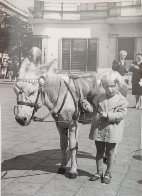 „Elżunia to ja.  Elżunia Szefler. Miałam wtedy 4 lata i fotografie między innymi z Placu Wolności oraz najprawdopodobniej z przedszkola. Na pierwszym zdjęciu stoję koło osiołka na Placu Wolności. Mam dość nietęgą minę. Byłam nieśmiałym dzieckiem i każda nowa sytuacja budziła moją niepewność oraz przejęcie nową rolą. Taka, jak tu pokazana, z żywym, dość dużym (jak dla mnie) zwierzęciem z pewnością mnie peszyła i powodowała niepewność, co może się wydarzyć. A wyobraźnię zawsze miałam dużą.