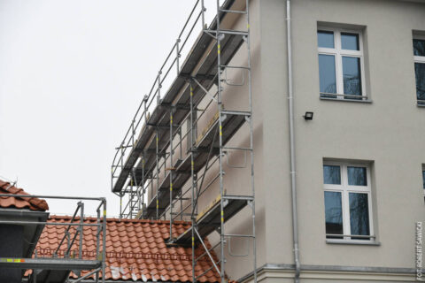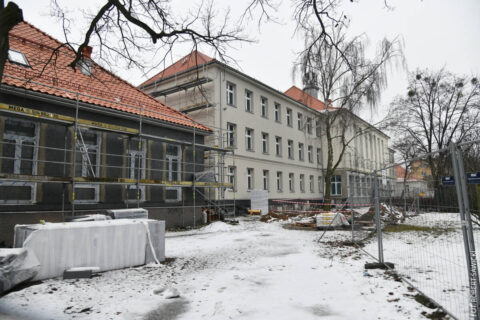 Z początkiem roku zakończyły się prace elewacyjne i dachowe i rozpoczęły roboty przy dociepleniu ścian fundamentowych. Trwają teraz prace z ostatniego punktu kontraktowego – drugiej części szkoły. Firma określa zaawansowanie prac na ok. 80 %. Zakończenie planowane jest wiosną tego roku.